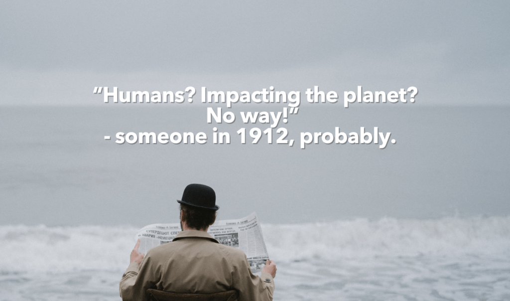 “Humans? Impacting the planet? No way!” – someone in 1912, probably.